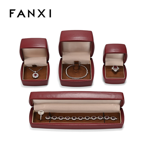Fanxi New cao cấp tùy chỉnh thiết kế da đồ trang sức màu đỏ hộp đóng gói cho bông tai vòng cổ vòng